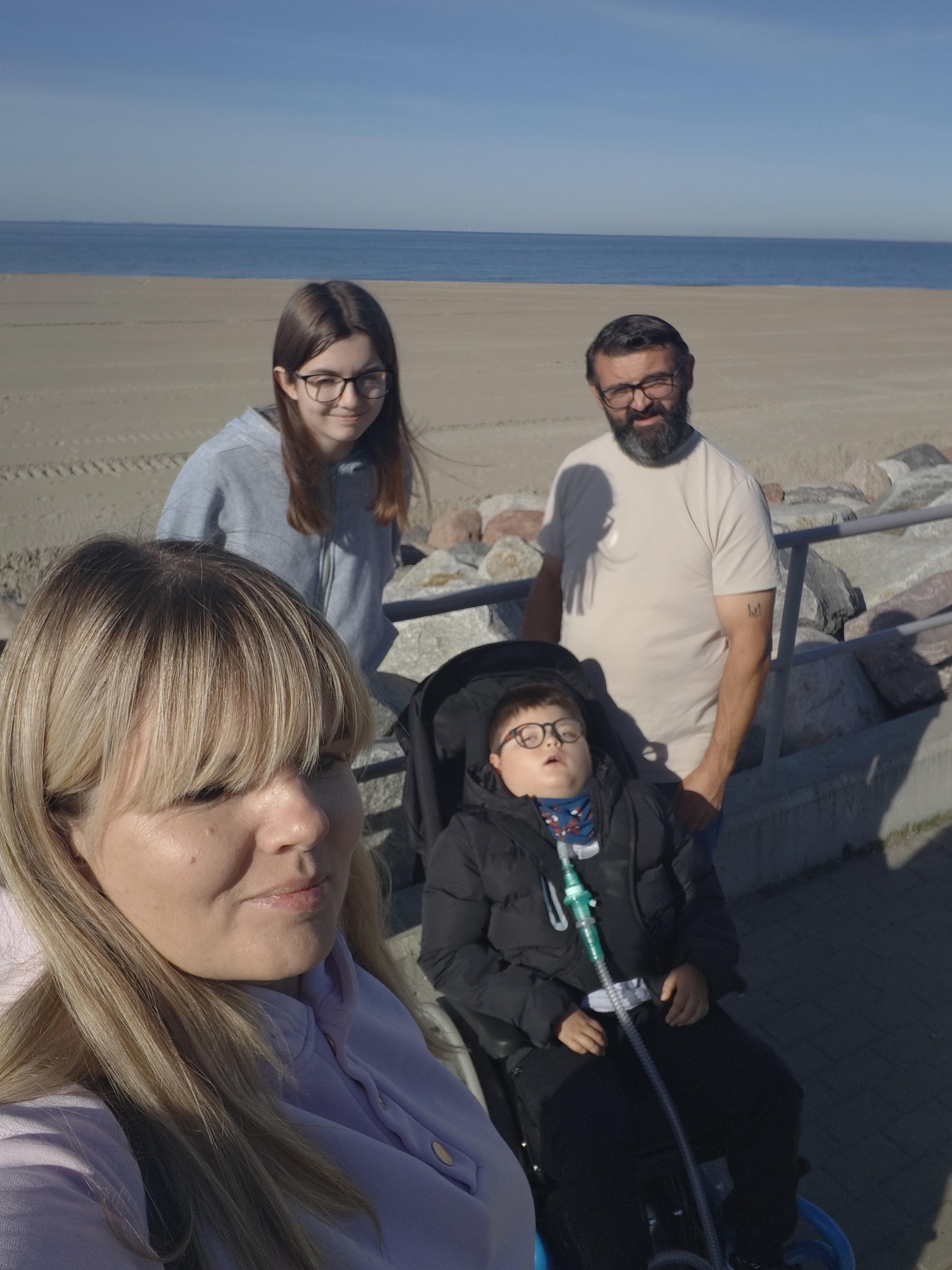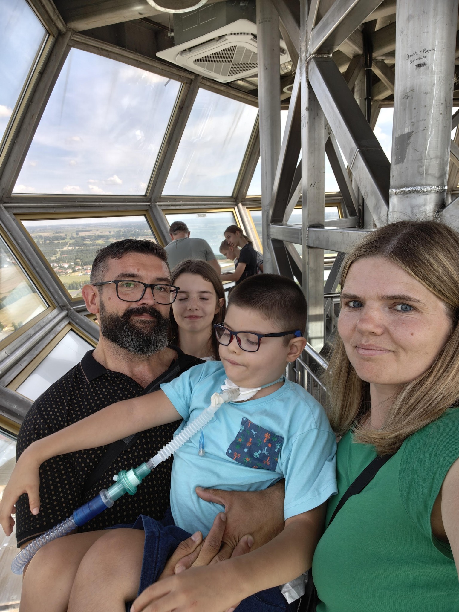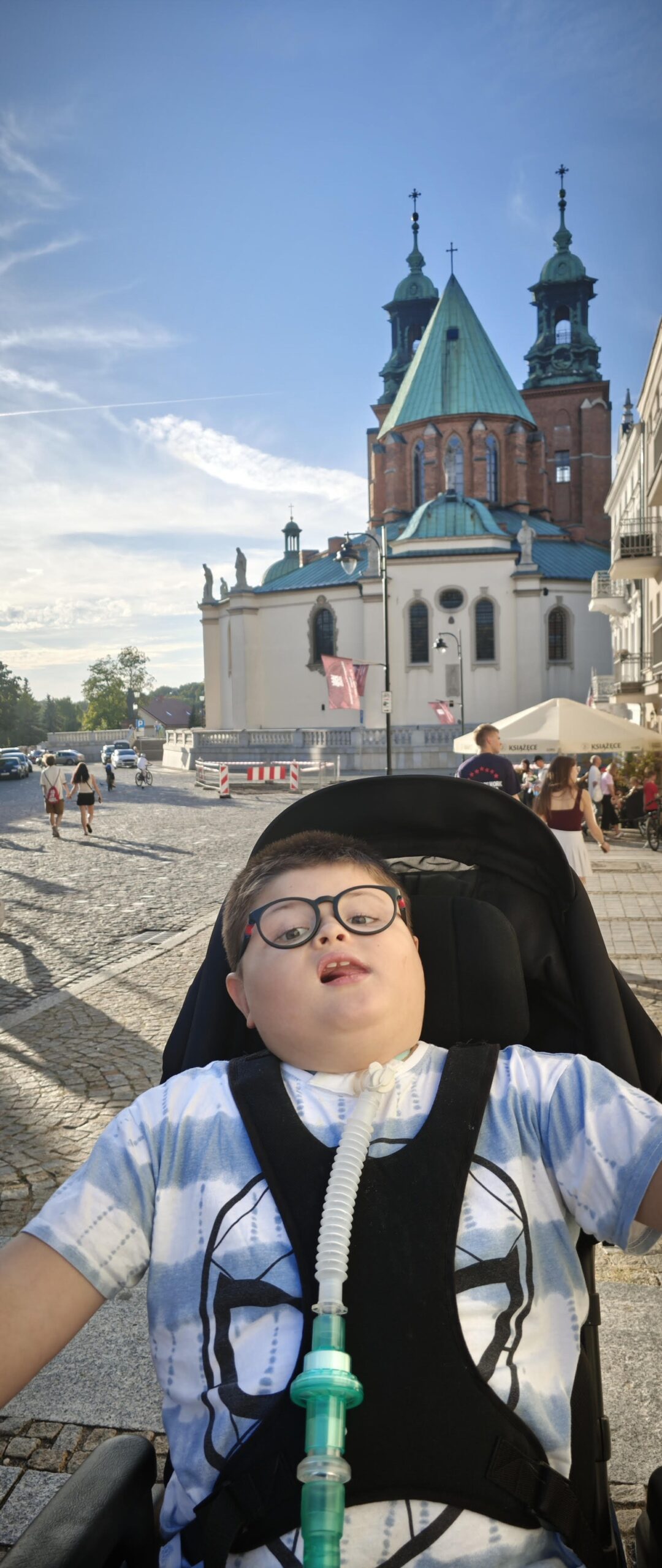 Wojtek to 8 letni chłopiec, który pomimo swojej choroby stara się cieszyć życiem tak jak umie. Choroby z którymi każdego dnia toczy nierówną walkę to: padaczka lekooporna opóźniająca rozwój, wada genetyczna, wrodzona wada mózgowia, niewydolność oddechowa spowodowana przebytym covid-19, wskutek czego ma tracheostomię i jest podłączony do respiratora 24h/dobę. Wojtek pomimo tego uczęszcza do ośrodka rehabilitacyjno – edukacyjno-wychowawczego Emedea w Poznaniu. W wolnych chwilach od zajęć, rehabilitacji i regularnych pobytów w szpitalu, Wojtuś uwielbia spędzać czas na spacerach, różnego rodzaju imprezach, koncertach. Staramy się w miarę możliwości chodzić jak najwięcej na spacery, uczestniczyć w różnych eventach również, a może przede wszystkim w tych na których obecna jest FNN (Ekiden, Bieg Motyli). Razem całą rodziną od kiedy jesteśmy w fundacji staramy się jak możemy wspierać zbiórki przed półmaratonem i maratonem Poznańskim – to już stałe pozycje w naszym kalendarzu. Staramy się jeździć z naszymi dziećmi po kraju i zwiedzać. Co prawda każdy taki wyjazd jest dla nas niemałym wyzwaniem. Zaplanowanie wszystkiego i zgranie czasowe jest bardzo trudne. Wszystko to jest uzależnione oczywiście od stanu Wojtka, ale też od pogody. Wojtek jest naszym małym wielkim wojownikiem, który każdego dnia pokazuje nam swoją siłę, determinację i chęć życia. Jego uśmiech i radość życia dodaje nam sił do dalszej walki, pomimo coraz to nowych przeszkód. Jesteśmy wdzięczni Fundacji za przyjęcie Wojtka pod swoje skrzydła, ale nie tylko za to. Dziękujemy też za ciepłe przyjęcie nas i umożliwienie nam uczestnictwa w zbiórkach jako wolontariusze.