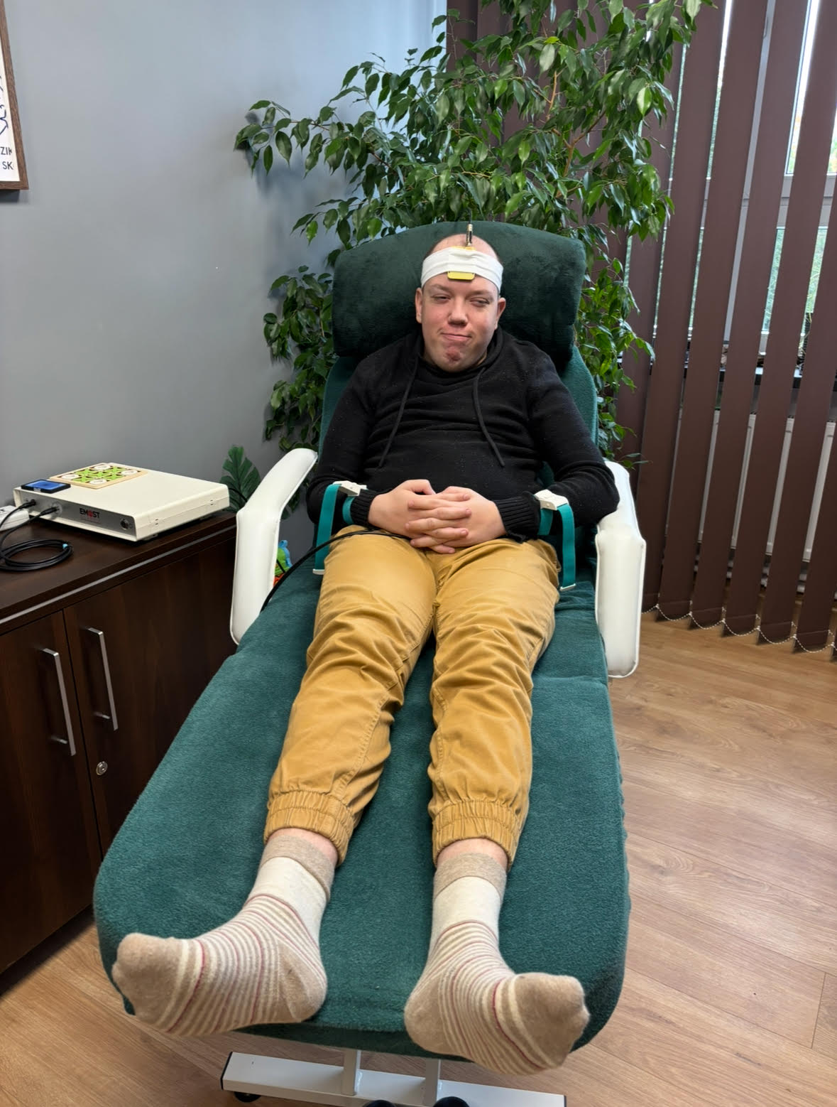 biomateriałem – Alloplant. Po dwóch wyjazdach (luty i lipiec 2025) pojawiły się pierwsze efekty – źrenice zaczęły reagować na światło, a Filip zaczął mówić, że widzi „troszkę”, „malutko”. Włączyła się fiksacja i na terapii Biofeedbacku okulistycznego Filip wodzi oczami za przesuwającymi się , kontrastującymi przedmiotami i coraz częściej celnie je pokazuje na monitorze. Korzystamy również z Biofeedbacku neurologicznego i terapii Emost, która wspiera samo regenerację organizmu. Przed nami jeszcze długa droga, ale wierzymy, że Filip odzyska wzrok. 💚👓