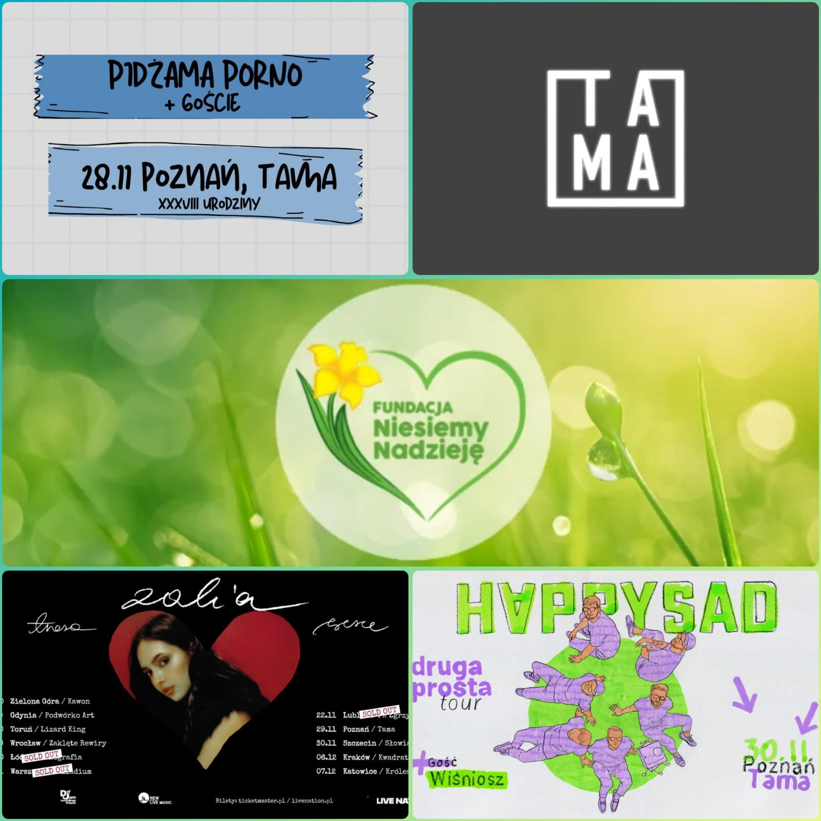 ☘️ Ostatni weekend listopada zapowiada się wyjątkowo! W Tama czekają na Was nie tylko Andrzejkowe klimaty 🔮, ale przede wszystkim trzy dni świetnych koncertów połączonych ze zbiórkami na rzecz podopiecznych Fundacji Niesiemy Nadzieję 💚