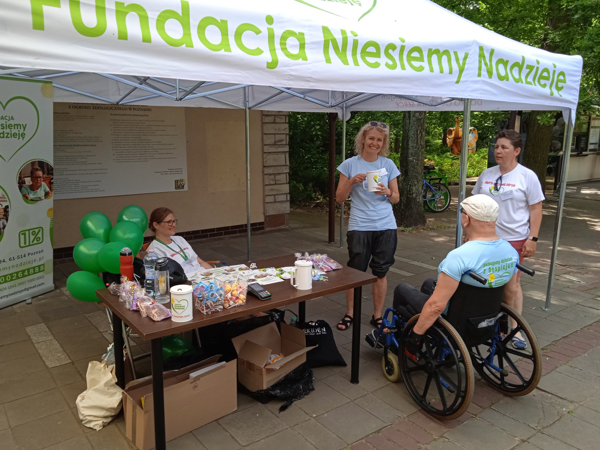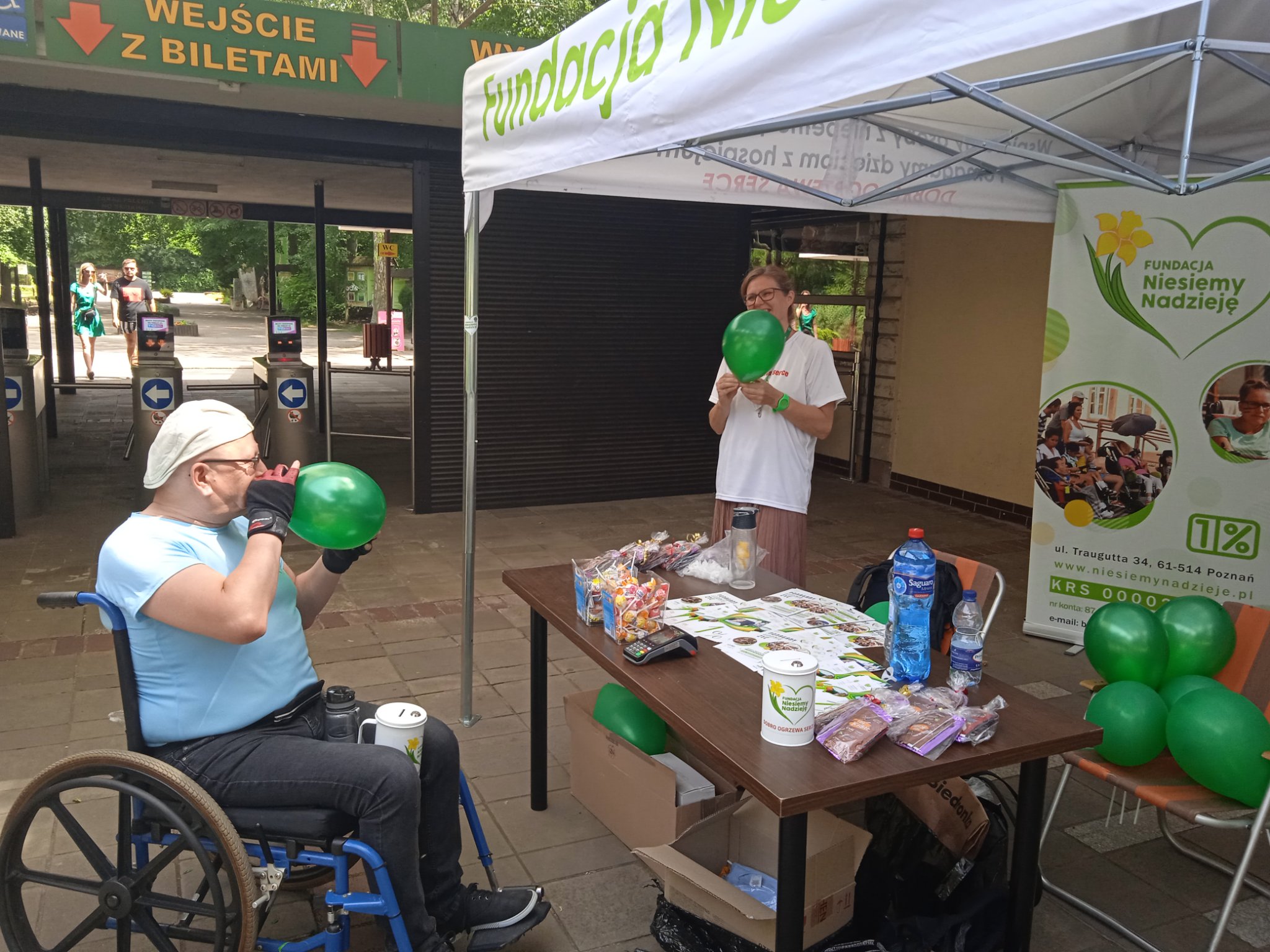 A oprócz tego lizakami przed wejściem do Zoo, a po wyjściu również zielonymi, fundacyjnymi balonami – a dopiero po wyjściu dlatego, że na teren Zoo w trosce o dobro i spokój zwierząt, nie wolno wnosić balonów i bardzo o to dbamy!